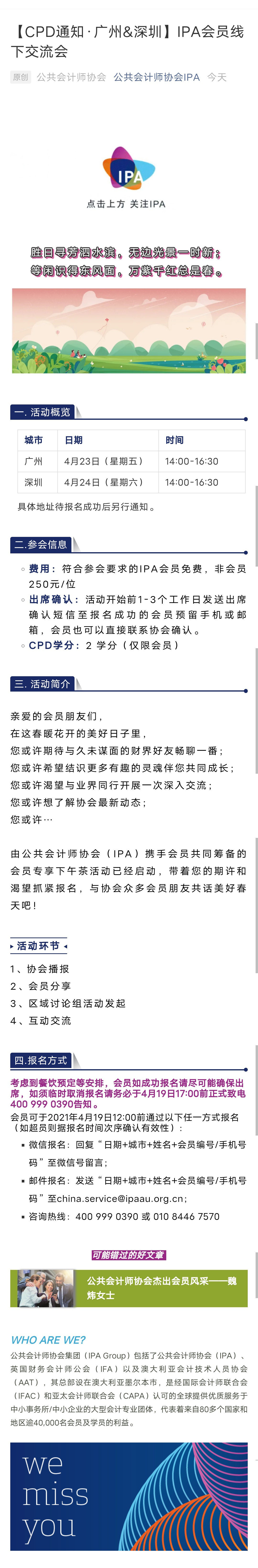 [CPD通知.廣州&深圳]IPA會員線下交流會